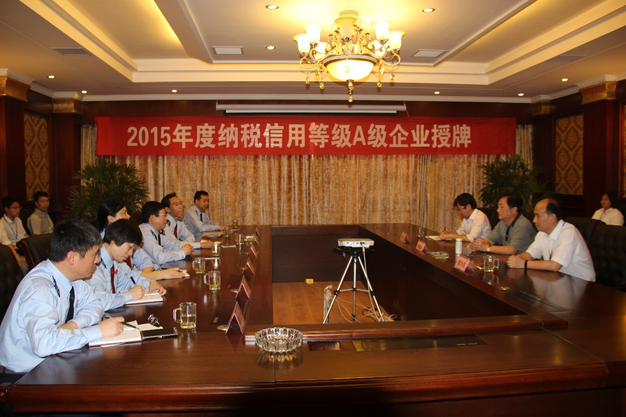 发布时间:2016-05-30为规范信用管理,促进诚信自律,提高法律遵从,推进社会信用,江西省税务部门根据国家相关管理办法和有关规定,遵循客观公正、标准统一、分级分类、动态调整的原则,对纳税人开展2015年度纳税信用等级评选。安博电子_安博电子(中国)智慧因依法经营、诚信纳税、规范管理被评为2015年度纳税信用等级A级企业。2016年5月26日,鹰潭市国税局局长吴晨阳、鹰潭市地税局副局长孙军样专程来到安博电子_安博电子(中国)智慧,向安博电子_安博电子(中国)智慧颁发了“2015年度纳税信用等级A级纳税人” 奖牌及证书。