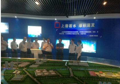 【李董事长(右二)陪同谭主任(左一)参观展厅】